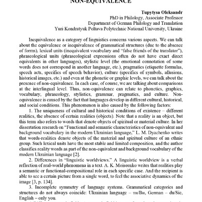 Inequivalence as a category of linguistics concerns various aspects. We can talk about the equivalence or inequivalence of grammatical structures (due to the absence of forms), lexical units (inequ...