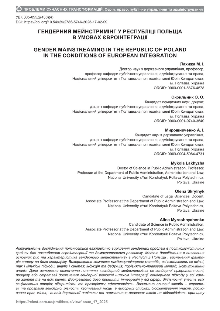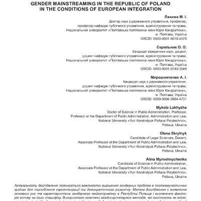 Стаття 2025/09/01Гендерний мейнстримінг у Республіці Польща в умовах євроінтеграції