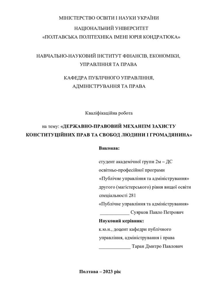 Стаття 2024/04/28Державно-правовий механізм захисту конституційних прав та свобод людини і громадянина