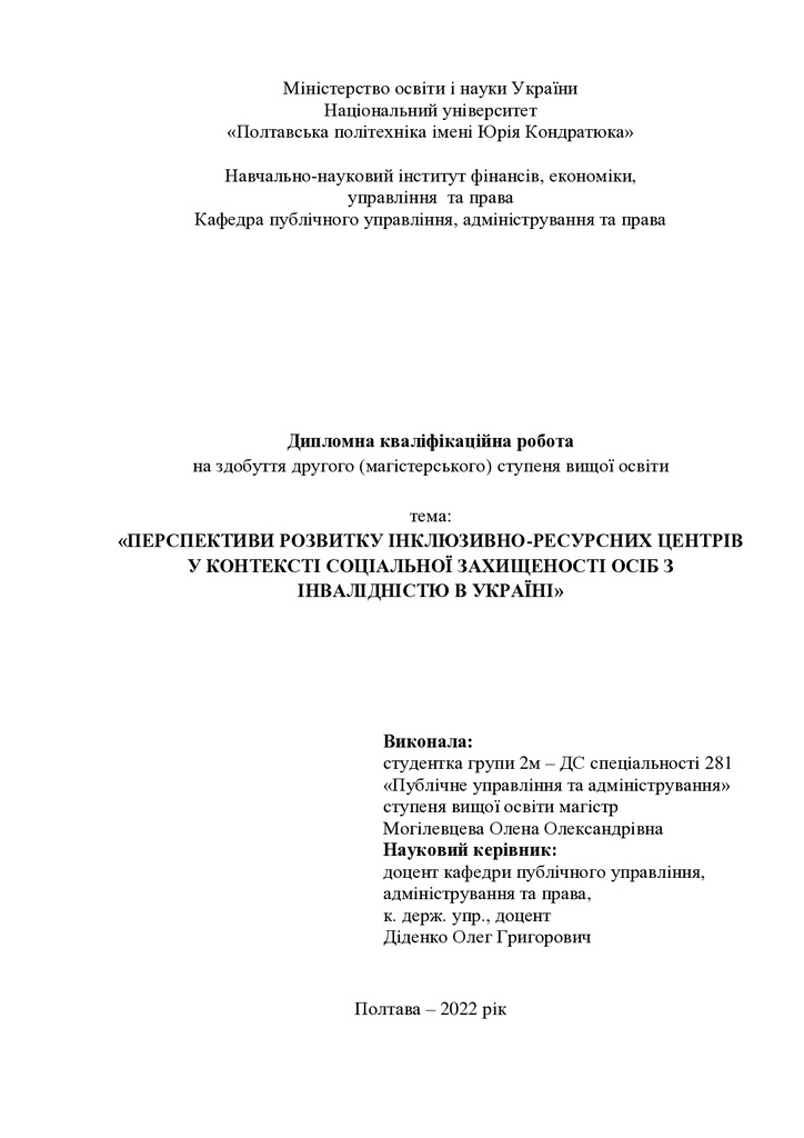 Перспективи розвитку інклюзивно-ресурсних центрів у контексті соціальної захищеності осіб з інвалідністю в Україні