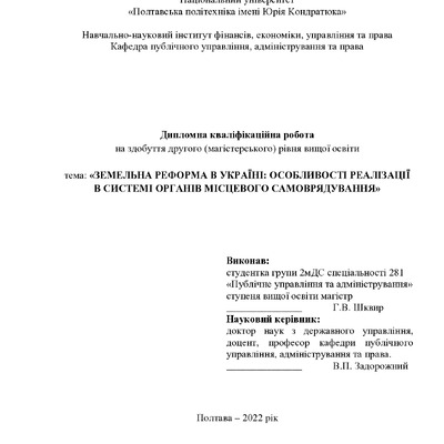 Земельна реформа в Україні: особливості реалізації в системі органів місцевого самоврядування