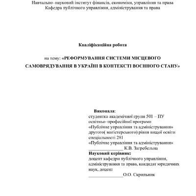 Стаття 2024/04/28Реформування системи місцевого самоврядування України в контексті воєнного стану