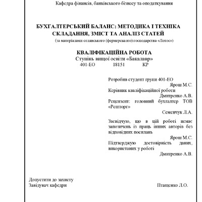 Стаття 2024/02/05Бухгалтерський баланс: методика і техніка складання, зміст і аналіз статей (за матеріалами селянського (фермерського) господарства «Лотос»)