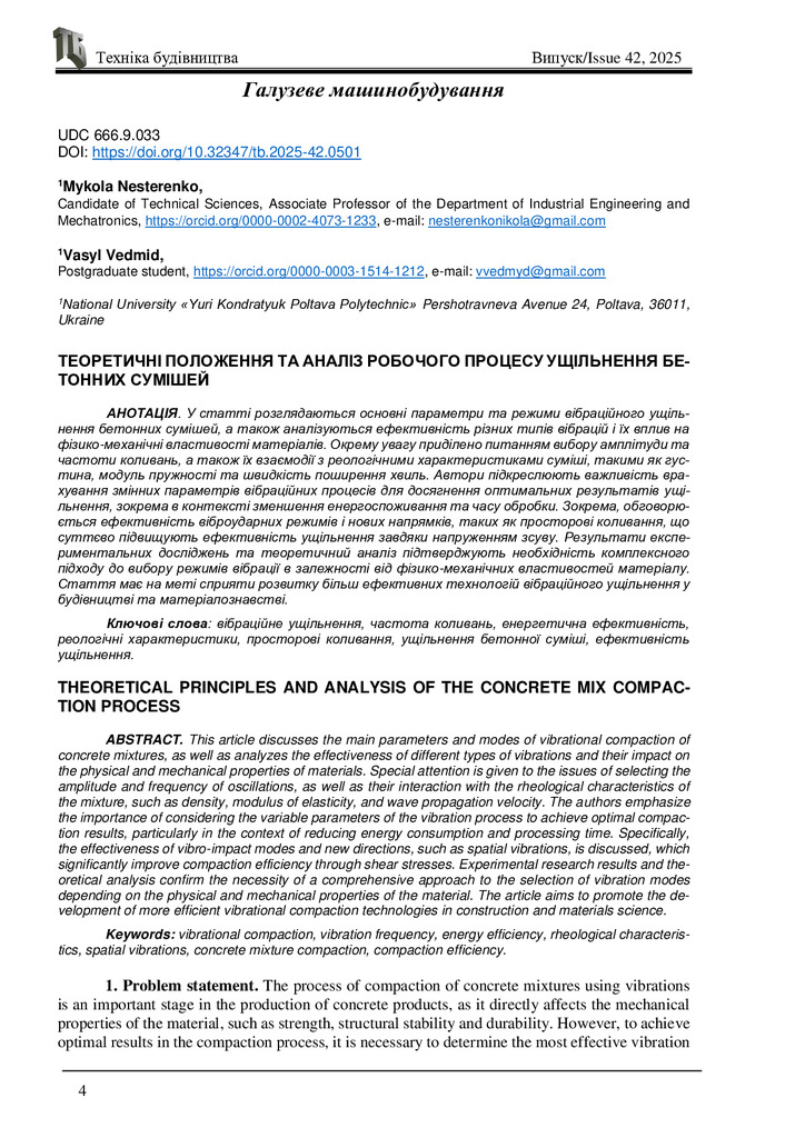 Стаття 2025/12/02Теоретичні положення та аналіз робочого процесу ущільнення бетонних сумішей