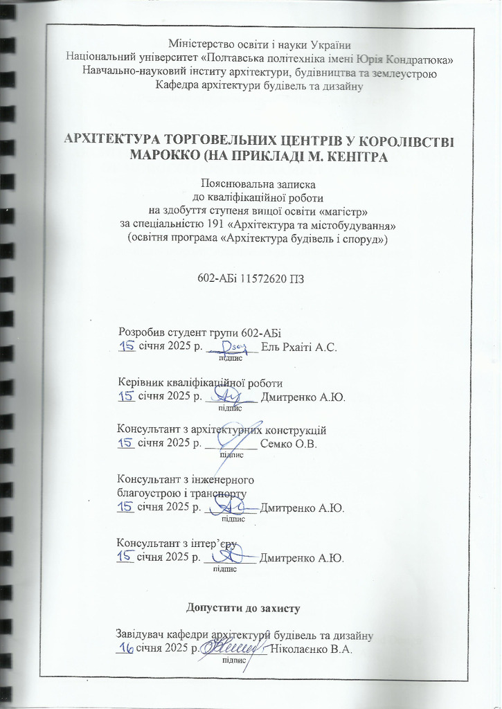 Кваліфікаційна робота присвячена визначенню принципів і методів проєктування торгових центрів в сучасних умовах Королівства Марокко на основі аналізу національного та світового досвіду в цій галузі...