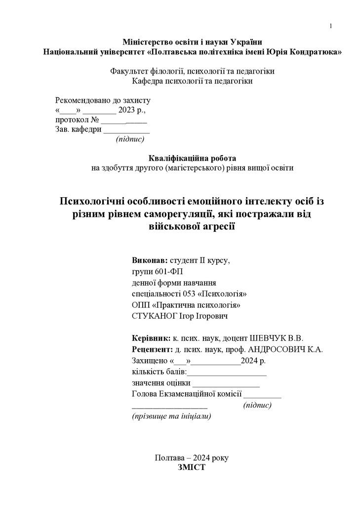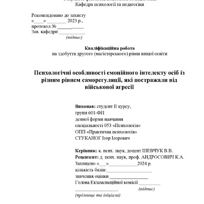 Кваліфікаційні роботи здобувачів вищої освіти (магістр) 053 Психологія