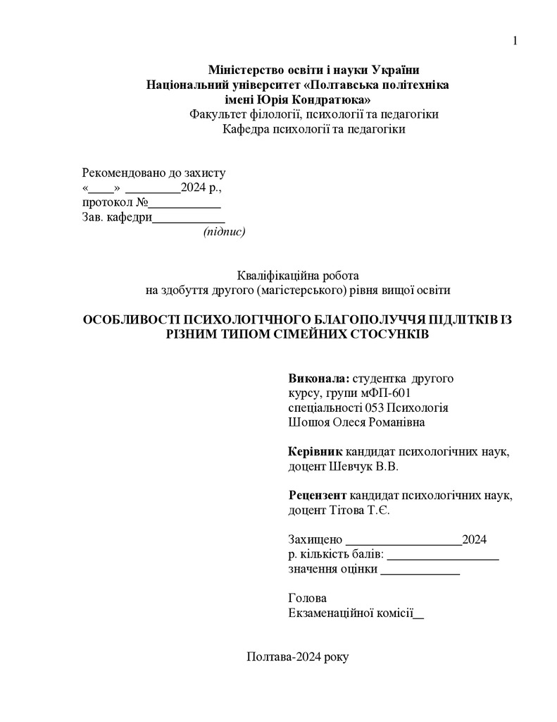 Стаття 2024/10/17Особливості психологічного благополуччя підлітків із різним типом сімейних стосунків