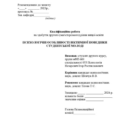 Стаття 2024/10/17Психологічні особливості віктимної поведінки студентської молоді