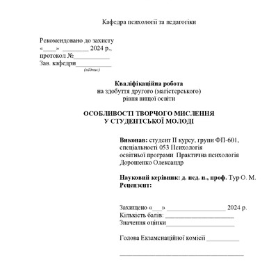 Стаття 2024/10/17Особливості творчого мислення у студентської молоді