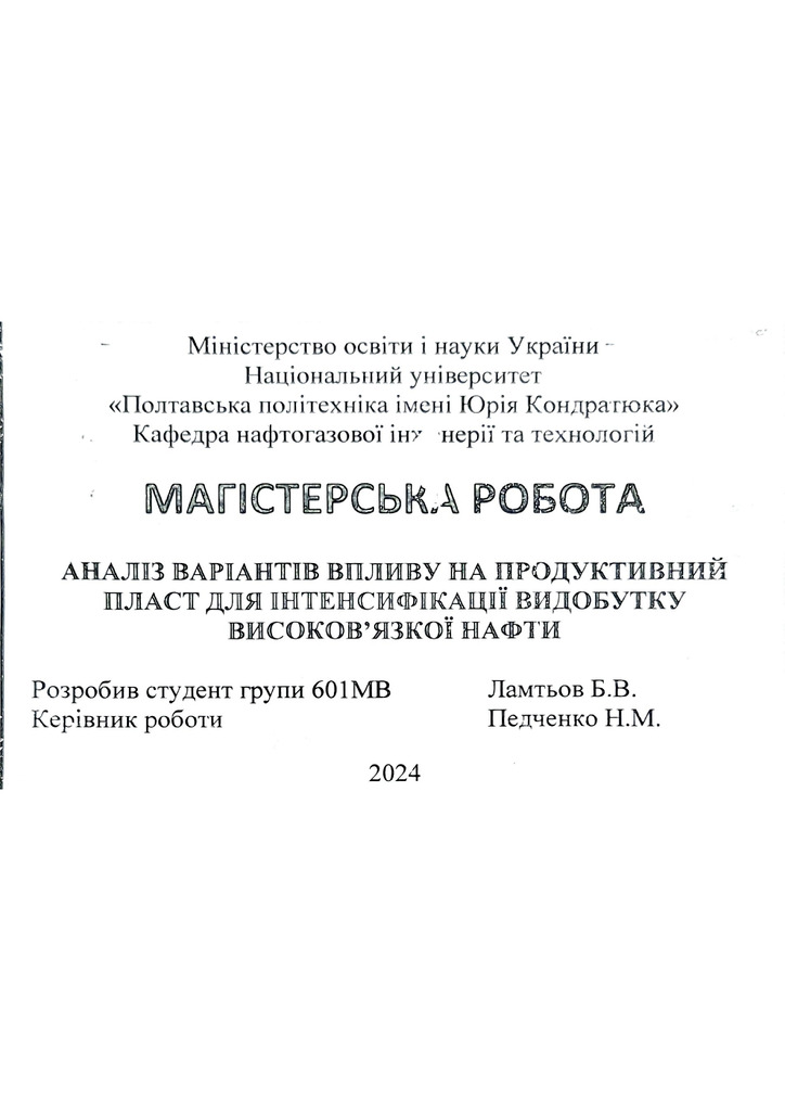Аналіз варіантів впливу на продуктивний пласт для інтенсифікації видобутку високов’язкої нафти