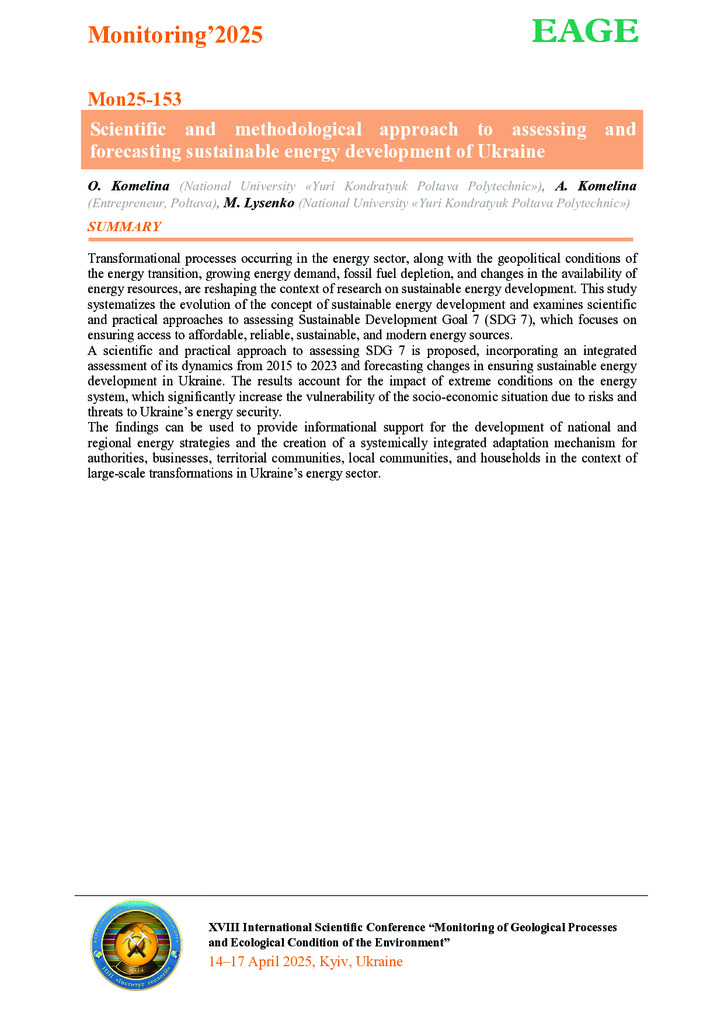 Стаття 2025/12/17Scientific and methodological approach to assessing and forecasting sustainable energy development of Ukraine
