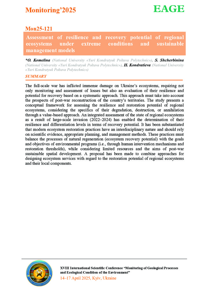Стаття 2025/12/17Assessment of resilience and recovery potential of regional ecosystems under extreme conditions and sustainable management models