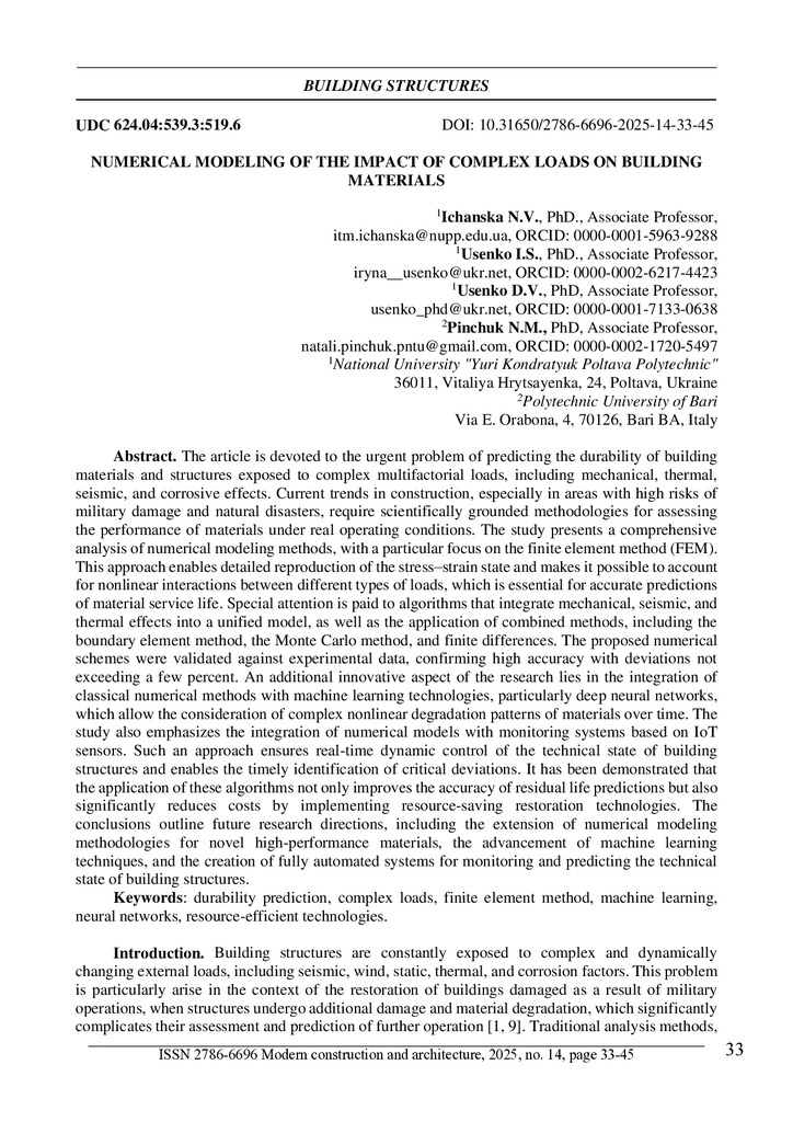 Стаття 2026/01/08Numerical modeling of the impact of complex loads on building materials