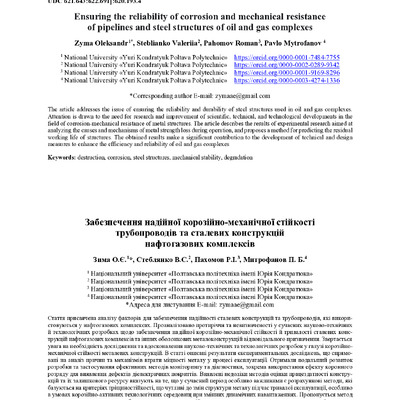 Стаття 2025/12/16Ensuring the reliability of corrosion and mechanical resistance of pipelines and steel structures of oil and gas complexes
