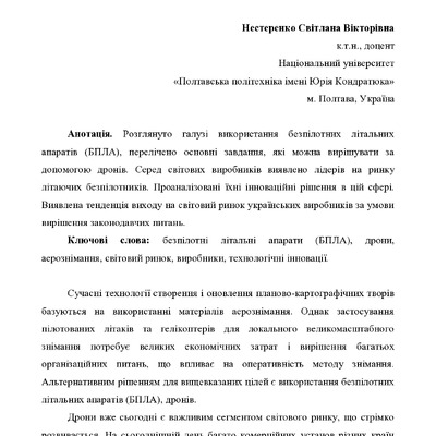 Розглянуто галузі використання безпілотних літальних апаратів (БПЛА), перелічено основні завдання...