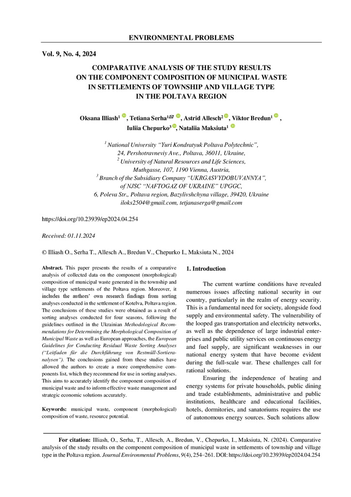 Стаття 2025/07/01Comparative analysis of the study results on the component composition of municipal waste in settlements of township and village type in the Poltava region