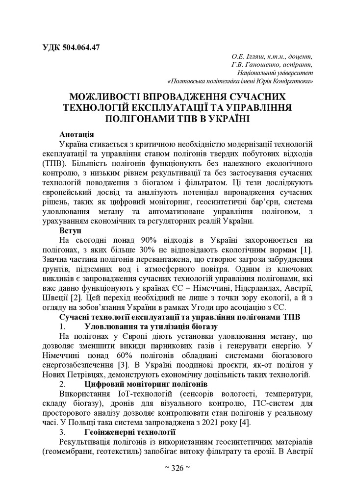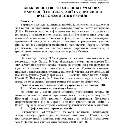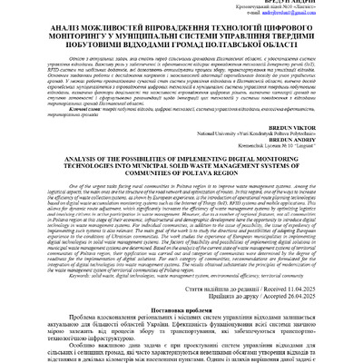 Стаття 2025/07/01Аналіз можливостей впровадження технологій цифрового моніторингу у муніципальні системи управління твердими побутовими відходами громад Полтавської області