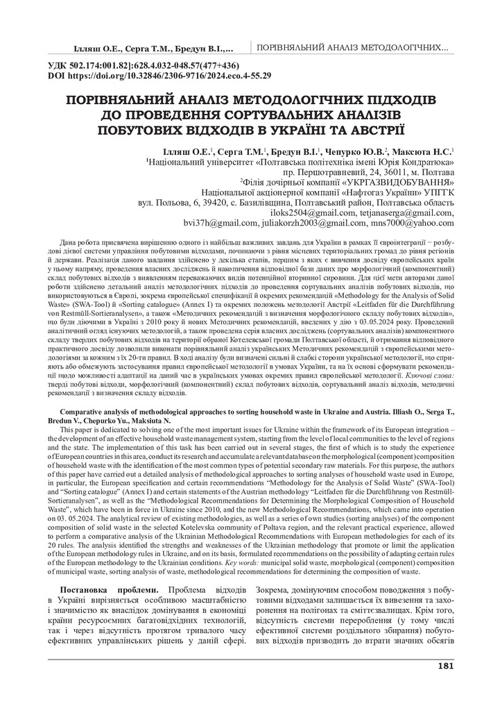 Стаття 2025/07/01Порівняльний аналіз методологічних підходів до проведення сортувальних аналізів побутових відходів в Україні та Австрії