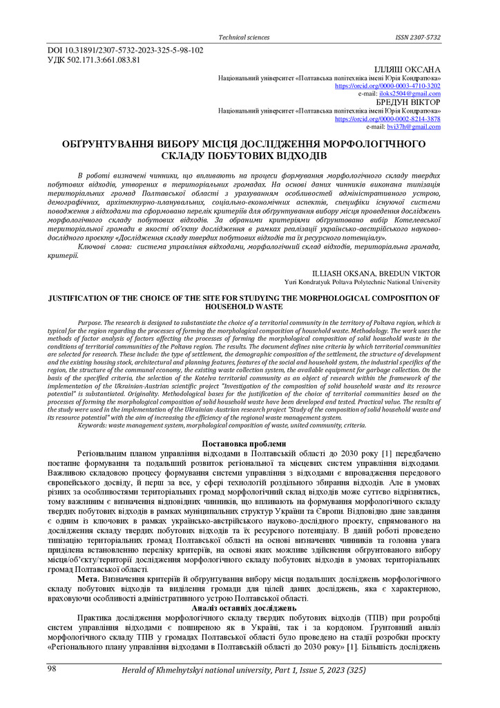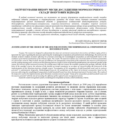 Стаття 2025/07/02Обґрунтування вибору місця дослідження морфологічного складу побутових відходів