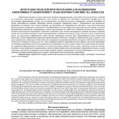 Стаття 2025/07/01Інтеграція моделей прогнозування для підвищення ефективності моніторингу транспортного впливу на довкілля