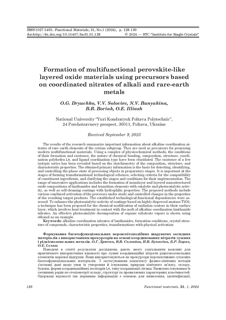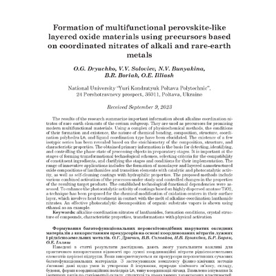 Стаття 2024/05/14Formation of multifunctional perovskite-like layered oxide materials using precursors based on coordinated nitrates of alkali and rare-earth metals