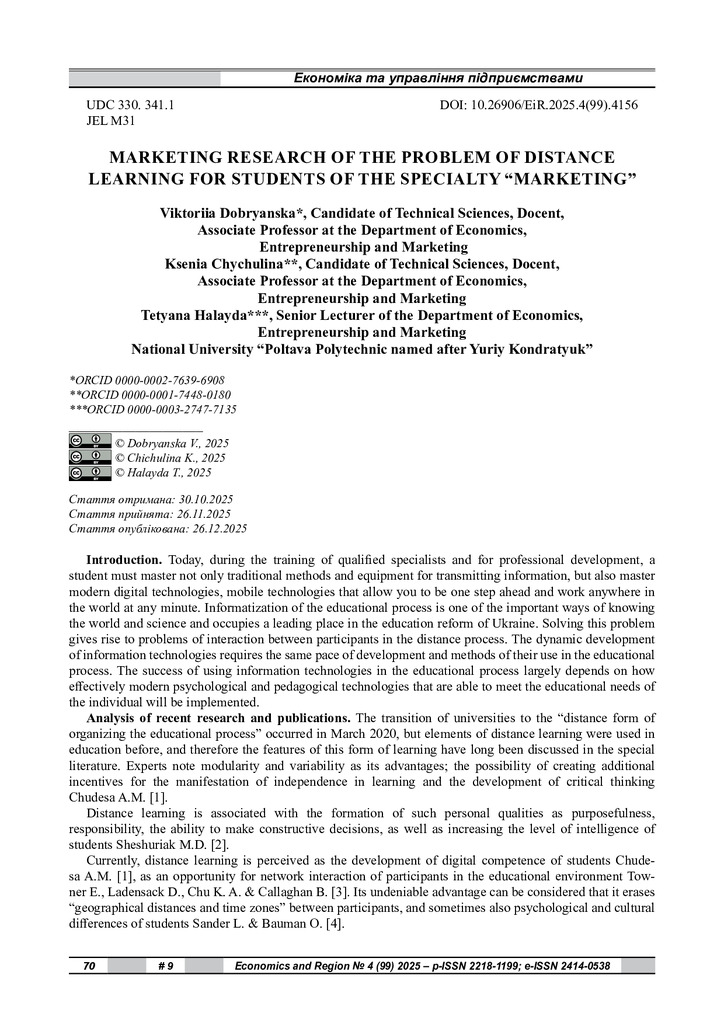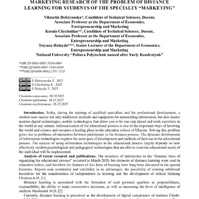 Стаття 2026/02/16Marketing research of the problem of distance learning for students of the specialty “marketing”