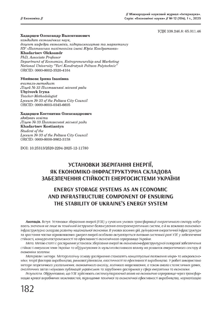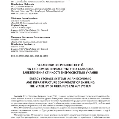 Стаття 2026/02/17Установки зберігання енергії, як економіко-інфраструктурна складова забезпечення стійкості енергосистеми України