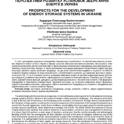 У статті досліджено економічні передумови, функціональні особливості та перспективи розвитку установок зберігання енергії (УЗЕ) в Україні в умовах сучасних військово-економічних викликів. Актуальні...