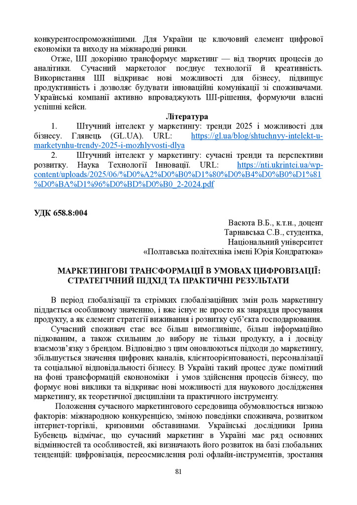 Стаття 2025/12/03Вплив цифрових інновацій на розвиток маркетингових стратегій українських компаній