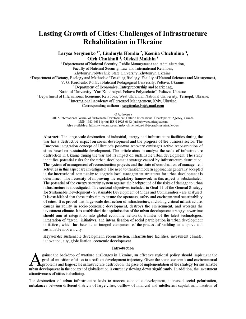 Стаття 2025/12/10Lasting Growth of Cities: Challenges of Infrastructure Rehabilitation in Ukraine
