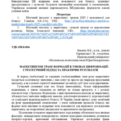 Стаття 2025/12/02Маркетингові трансформації в умовах цифровізації: стратегічний підхід та практичні результати