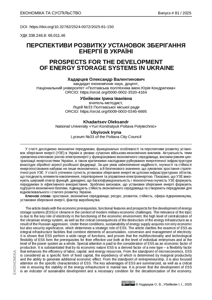 2026/02/17Установки зберігання енергії, як економіко-інфраструктурна складова забезпечення стійкості енергосистеми України