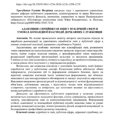 2026/02/10Адаптивне сприйняття змін у публічній сфері в умовах командної взаємодії державних службовців