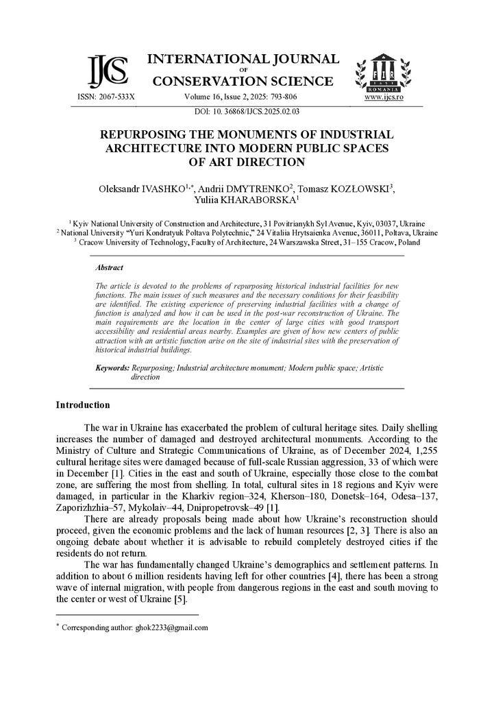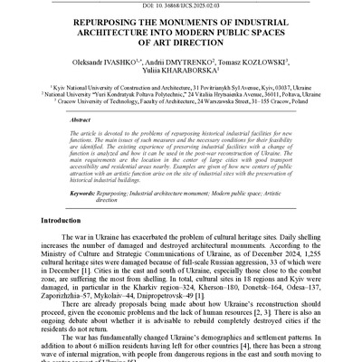 Стаття 2025/06/17Repurposing the Monuments of Industrial Architecture into Modern Public Spaces of Art Direction