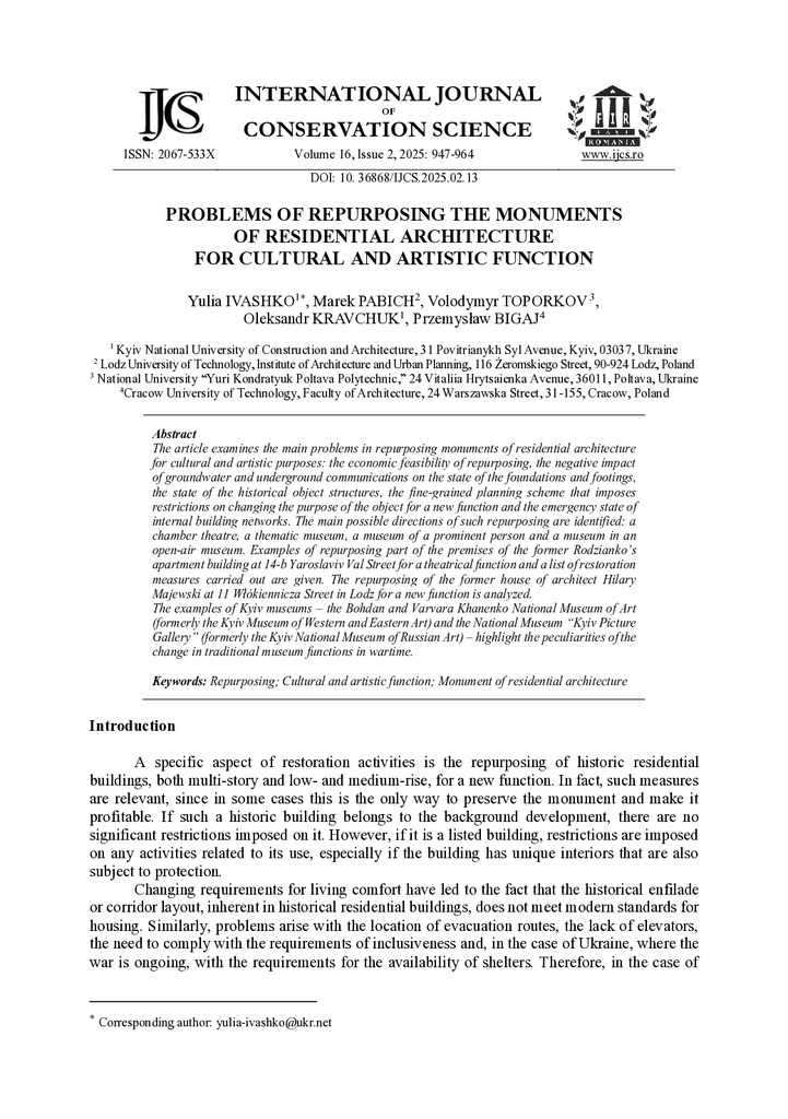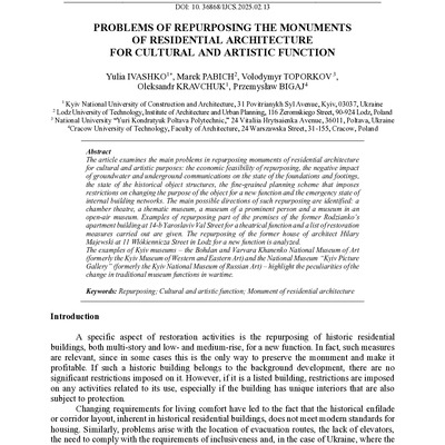 Стаття 2025/06/17Problems of Repurposing the Monuments of Residential Architecture for Cultural and Artistic Function