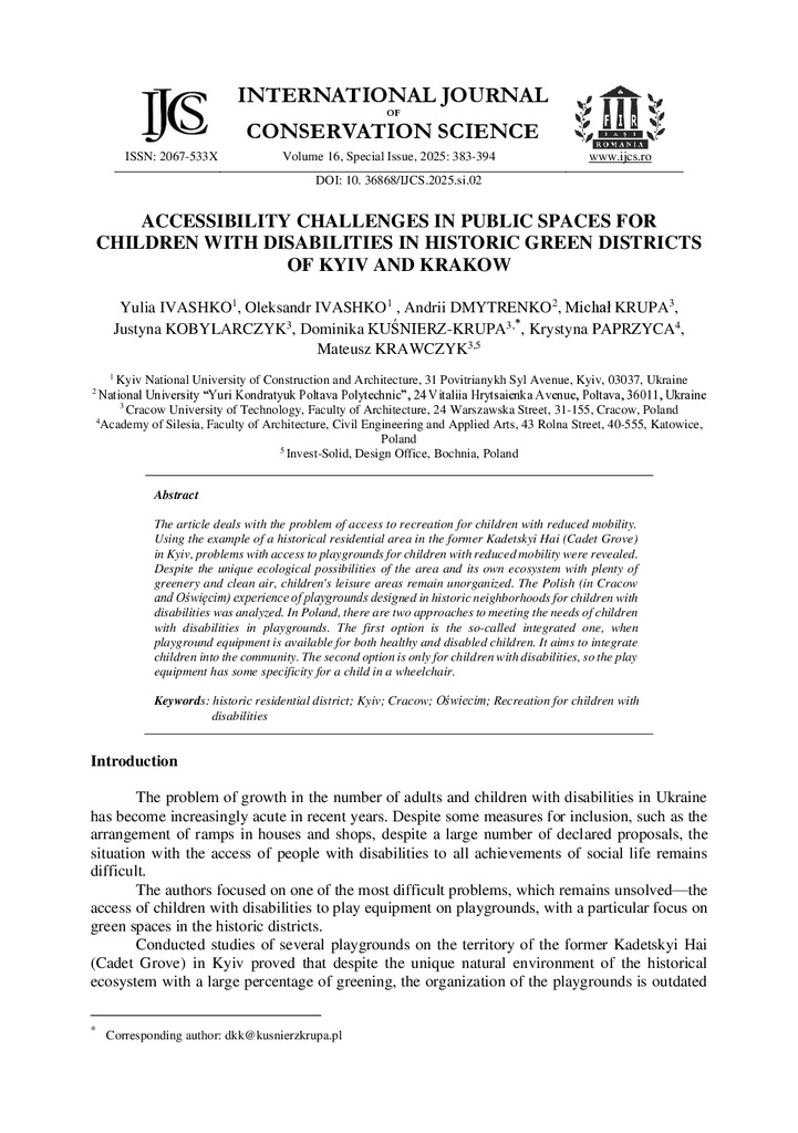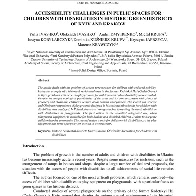 Стаття 2025/05/19Accessibility Challenges in Public Spaces for Children with Disabilities in Historic Green Districts of Kyiv and Krakow