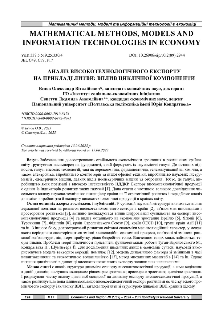 Стаття 2023/10/09Аналіз високотехнологічного експорту на прикладі Литви: вплив циклічної компоненти
