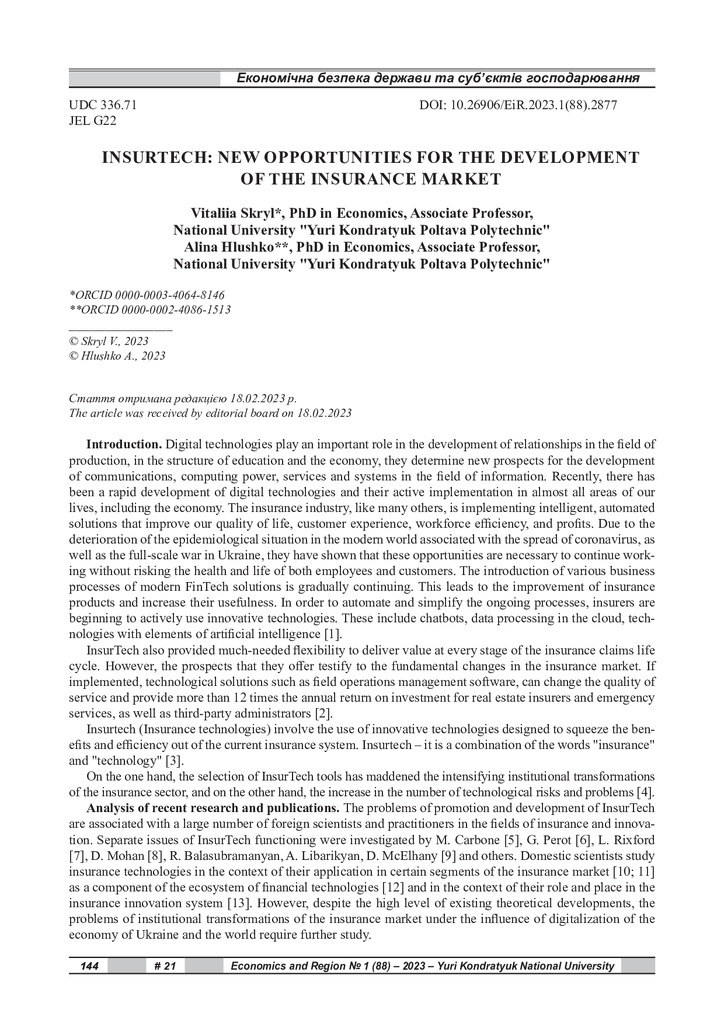 Стаття 2023/06/12Insurtech: new opportunities for the development of the insurance market