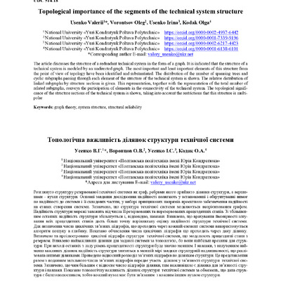 Стаття 2023/01/12Topological importance of the segments of the technical system structure