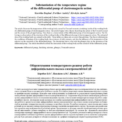 У статті досліджується зміна температури робочого органа диференційного насоса електромагнітної д...