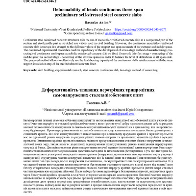 Стаття 2023/06/07Deformability of bends continuous three-span preliminary self-stressed steel concrete slabs