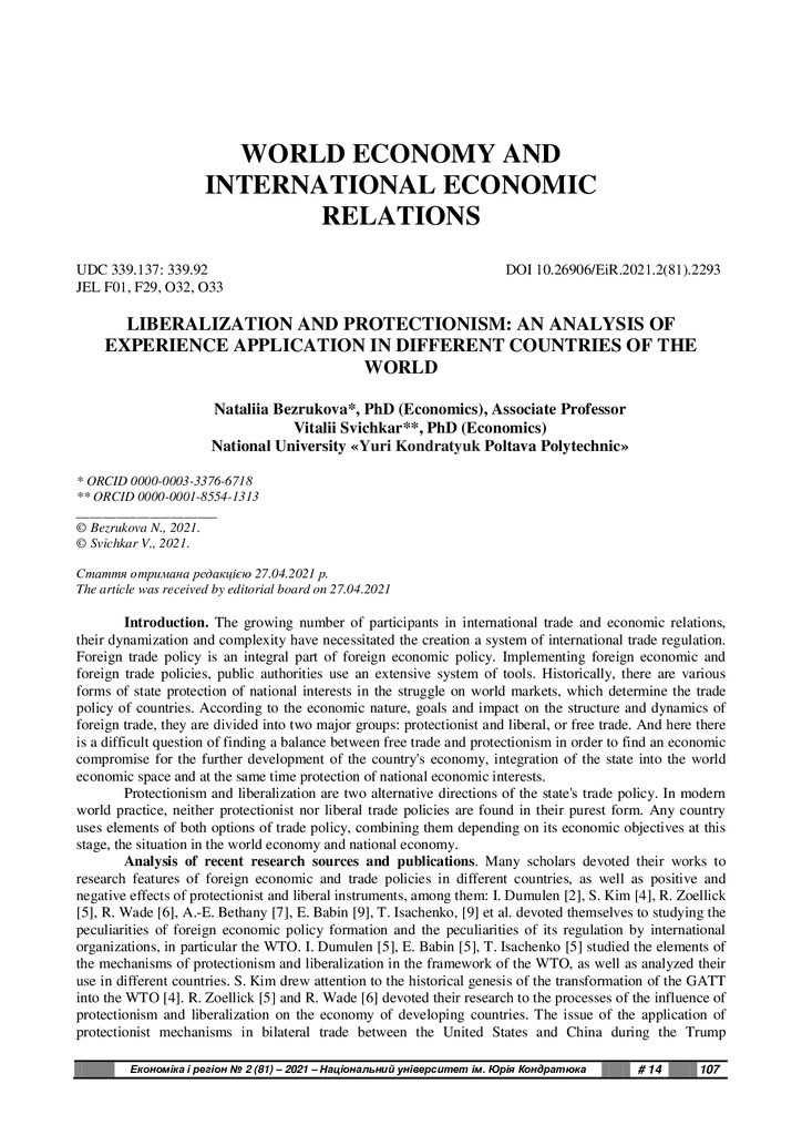 Стаття 2022/02/15Liberalization and Protectionism: an Analysis of Experience Application in Different Countries of the World