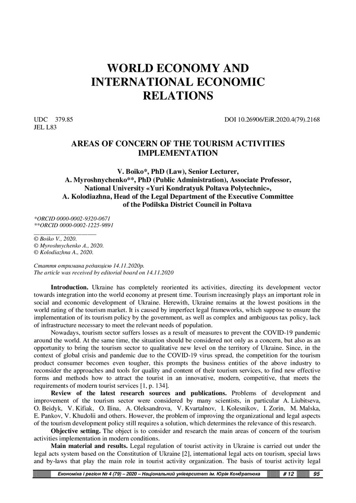 Стаття 2021/12/03Areas of Concern of the Tourism Activities Implementation