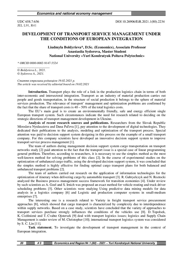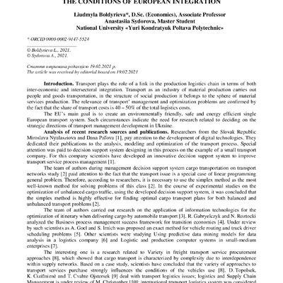 Стаття 2022/03/18Development of Transport Service Management under the Conditions of European Integration