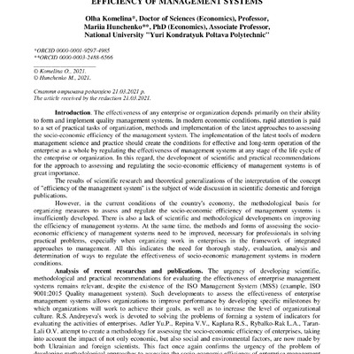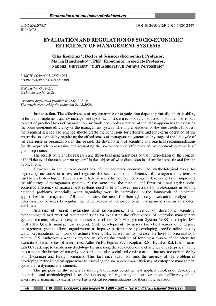Стаття 2022/03/21Evaluation and Regulation of SocioEconomic Efficiency of Management Systems