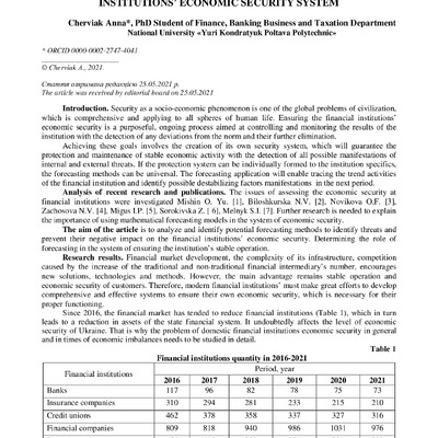 Стаття 2022/02/15Mathematical forecasting models in the financial institutions’ economic security system