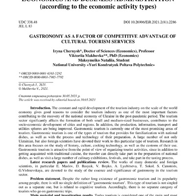 Стаття 2022/02/09Gastronomy as a Factor of Competitive Advantage of Cultural Tourism Services