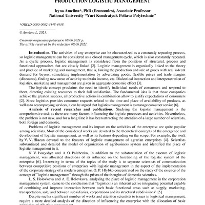 Стаття 2022/02/15Theoretical and Methodological Foundations of Production Logistic Management