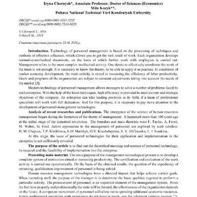 Стаття 2018/10/05Modern technologies of personnel management
