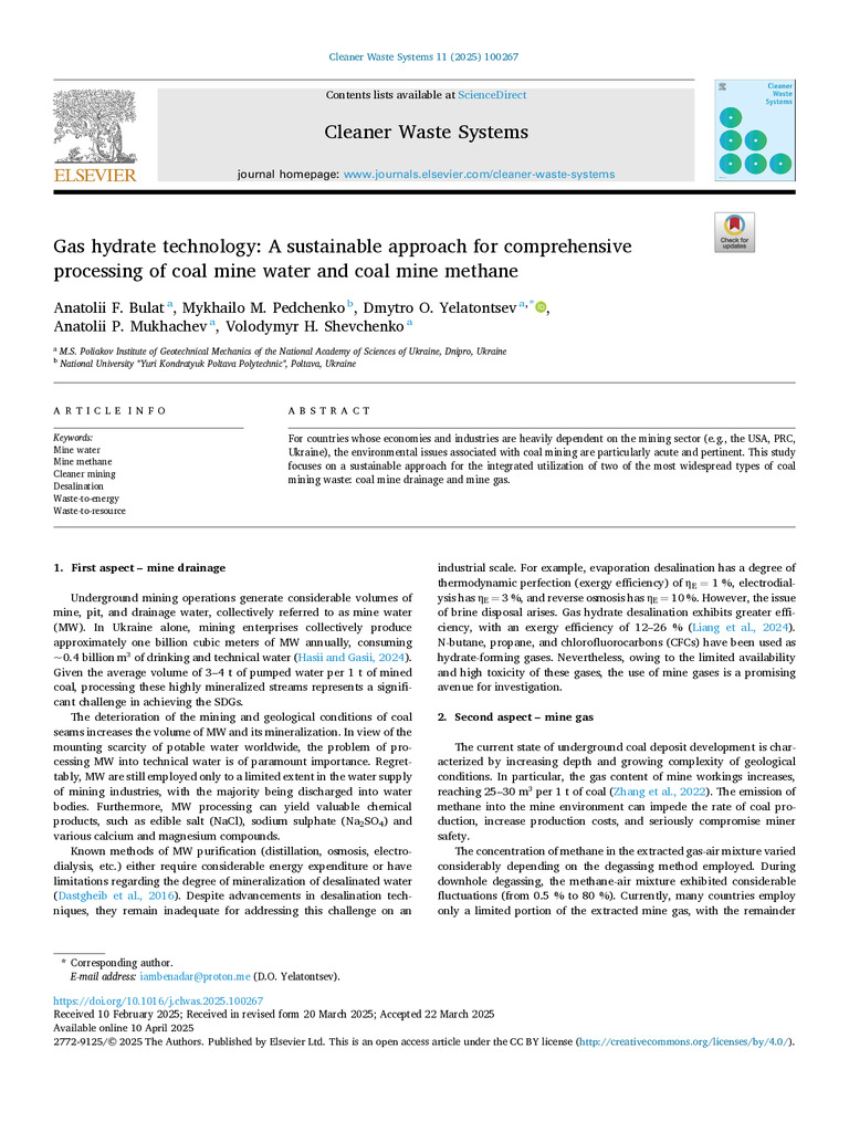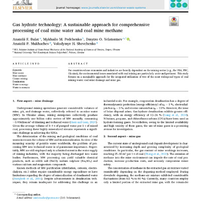 Стаття 2025/12/08Gas hydrate technology: A sustainable approach for comprehensive processing of coal mine water and coal mine methane